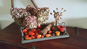 Zo'n uitstalling heb ik ook op de dekenkist in de gang. Ik houd erg van tuinieren en de natuur. Die haal ik hiermee naar binnen.'
