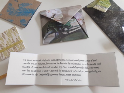 een pakje met memoblaadjes, kleine opschrijfboekjes,